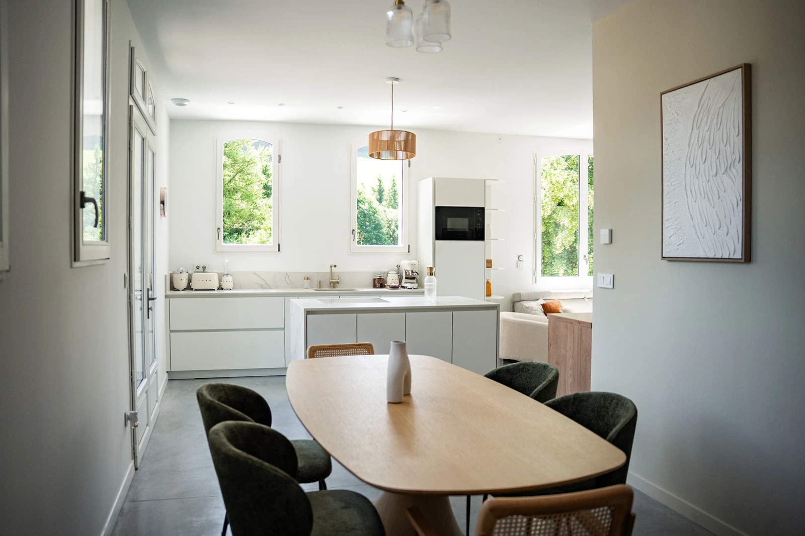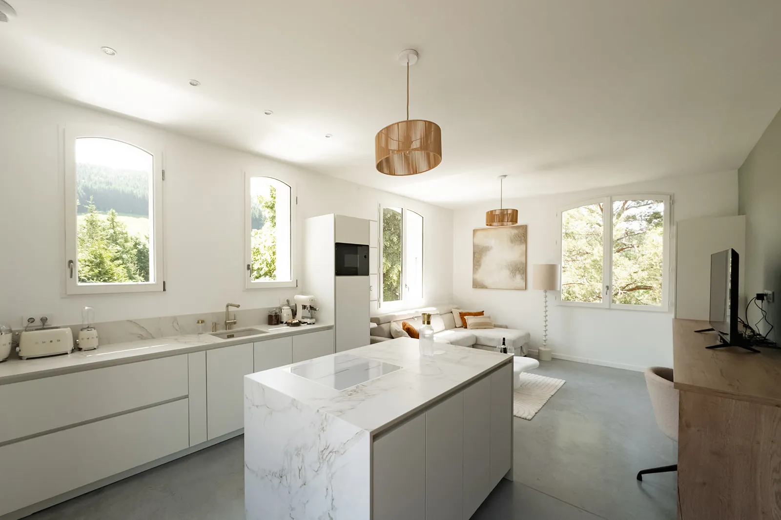 Laissez-vous inspirer par les images du Croc Blanc, où chaque détail reflète confort et raffinement. Des matériaux modernes, une décoration soignée et une ambiance chaleureuse composent un cadre idéal pour savourer vos séjours au cœur du Vercors.